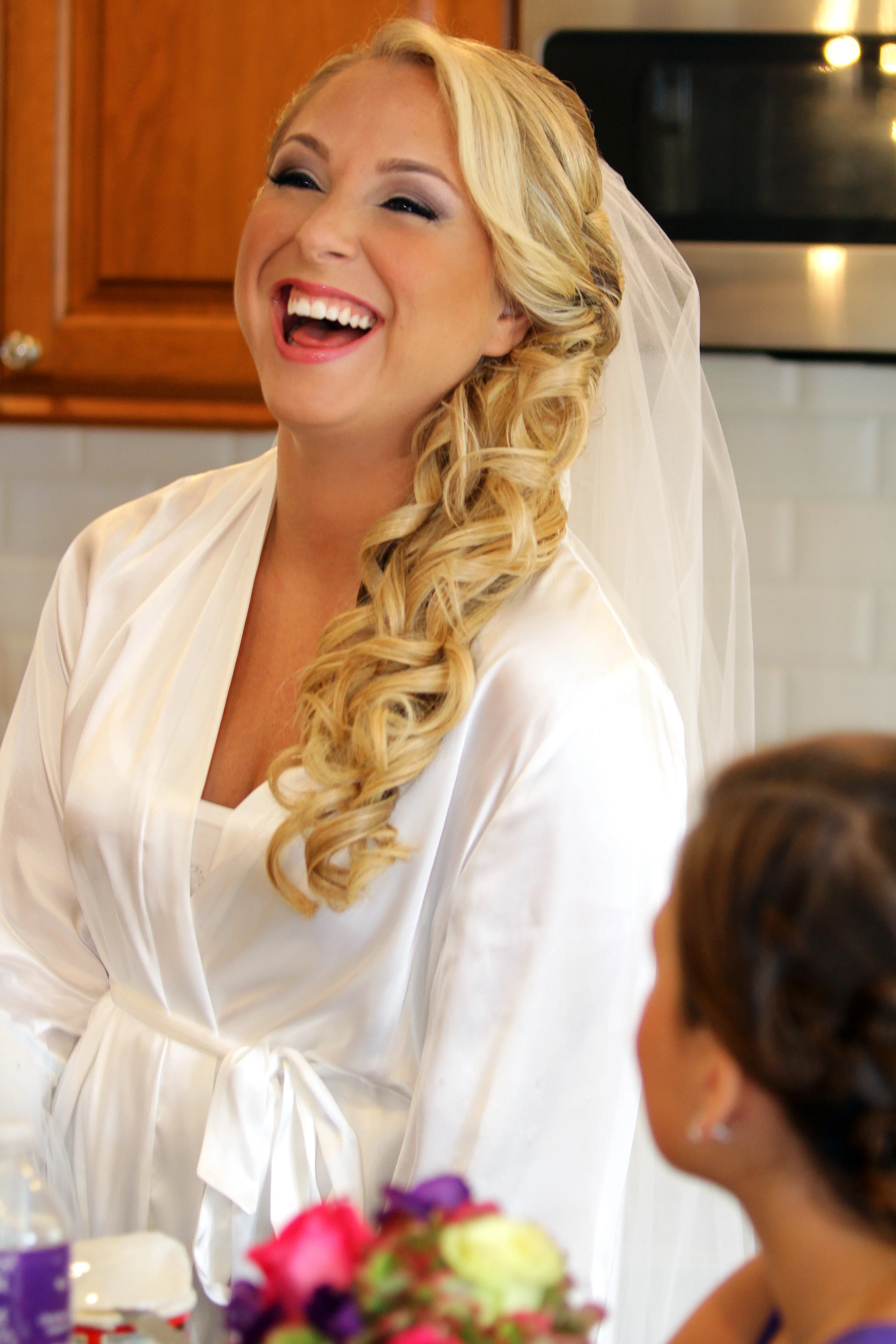 On my wedding day, the first person I saw that morning at my home in Whitestone was Jess and Kristen of Bridal Rush. Jess was very calm and made me feel at ease and that is what helped me keep composed and nervous-free! (Because let’s be honest, you are getting married and nerves are inevitable!) Jess did my Mom’s hair, my Maid of Honor, and then mine last! Everyone was so happy with their hair that day and were all smiles!